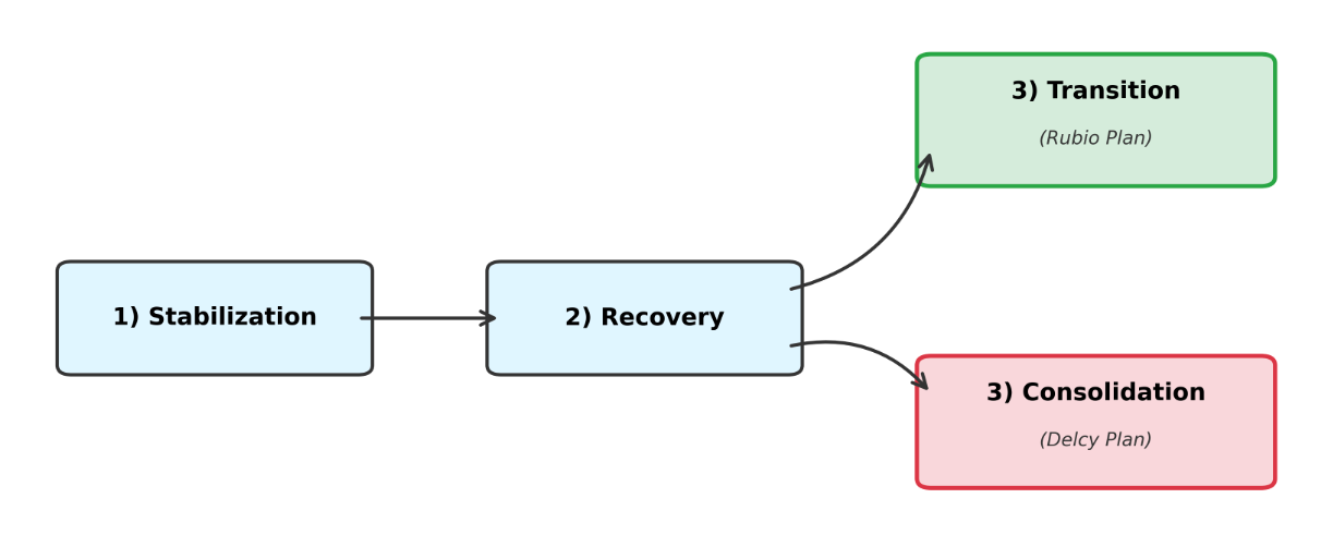 1) Stabilization - 2) Recovery - 3) Transition